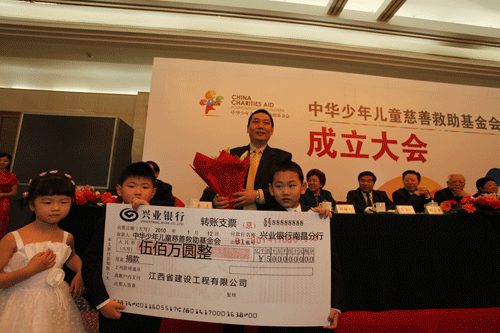 中華少年兒童慈善救助基金會(huì)(以下簡(jiǎn)稱“兒慈會(huì)”)2010年1月12日在北京人民大會(huì)堂正式成立。中共中央政治局常委、國(guó)務(wù)院副總理李克強(qiáng)在為基金會(huì)成立發(fā)來的賀信中說:“慈善救助是一項(xiàng)崇高的事業(yè),是對(duì)社會(huì)保障的重要補(bǔ)充。謹(jǐn)對(duì)基金會(huì)的成立表示祝賀,對(duì)大家矢志從事少年兒童事業(yè)表示由衷的敬意。希望并相信你們會(huì)在各方支持下,發(fā)揮優(yōu)勢(shì),搭建平臺(tái),幫助更多有特殊困難的少年兒童和他們的同齡人,一起在同一片藍(lán)天下健康成長(zhǎng)。”江西省建設(shè)工程有限公司董事長(zhǎng)宗贛生到會(huì)并捐贈(zèng)人民幣500萬元設(shè)立"自立奮進(jìn)獎(jiǎng)",宗贛生表示,以后會(huì)根據(jù)企業(yè)發(fā)展?fàn)顩r捐款額逐年遞增,對(duì)貧困學(xué)生以及教師進(jìn)行資助和獎(jiǎng)勵(lì)。